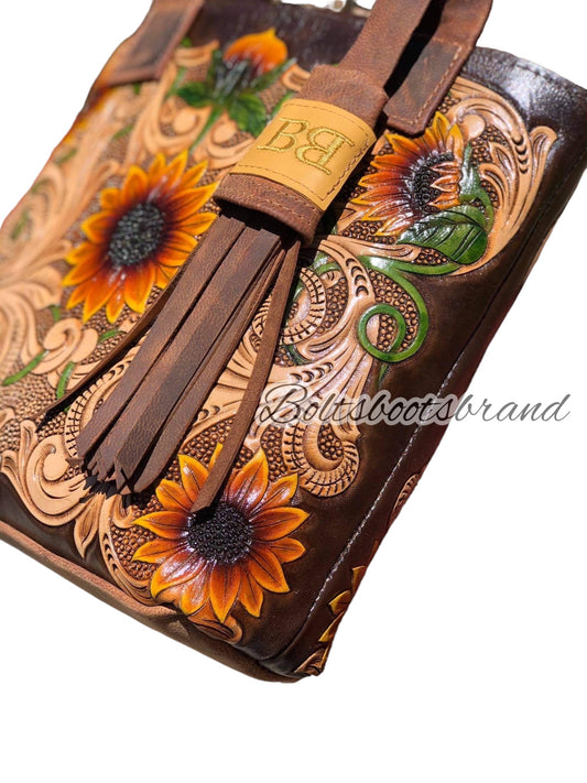 Genuine Western Cowhide Leather Backpack Diaper Bag Personal Item carry-on luggage