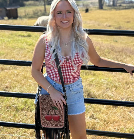 Cherry Crush Tooled Leather Purse