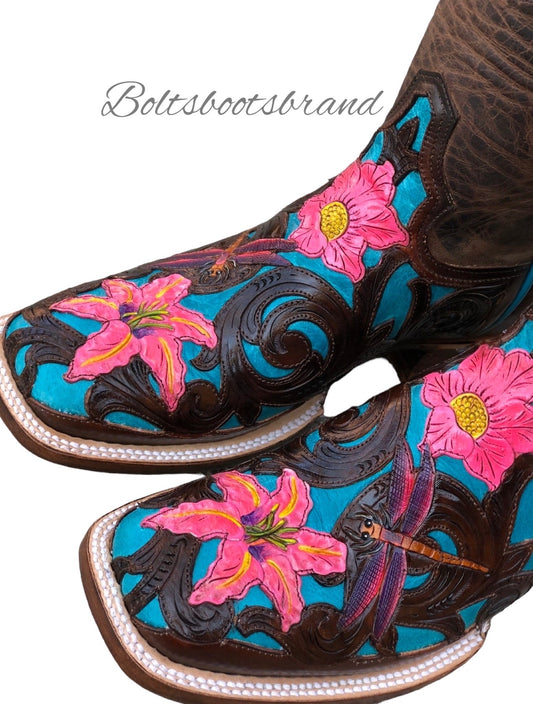 Brown turq ๐ณ(( engraved leather)) by Boltsbootsbrand