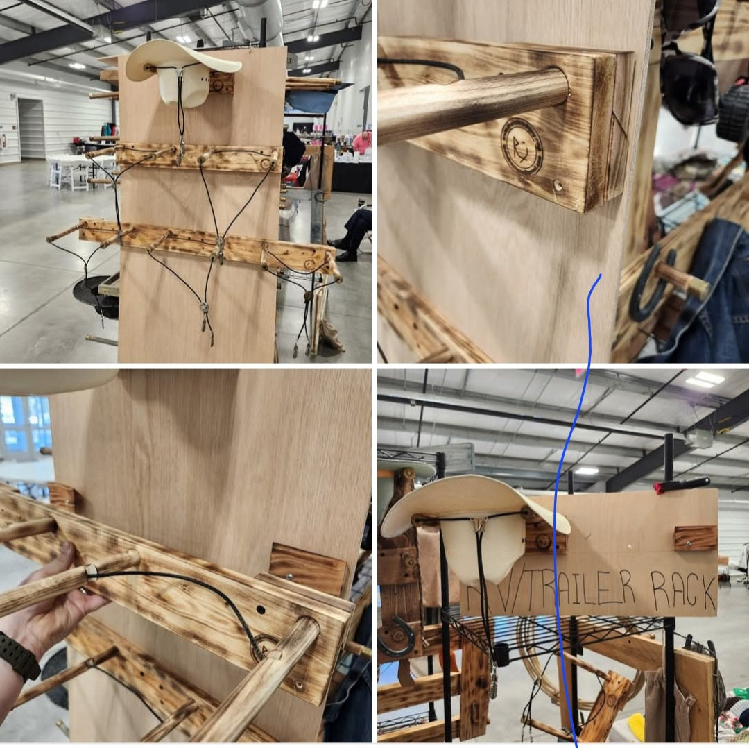 Howdy! Tired of your prized cowboy hats rolling around in your camper or trailer? Well, say howdy to the Western and Rodeo Cowboy Hat Rack!