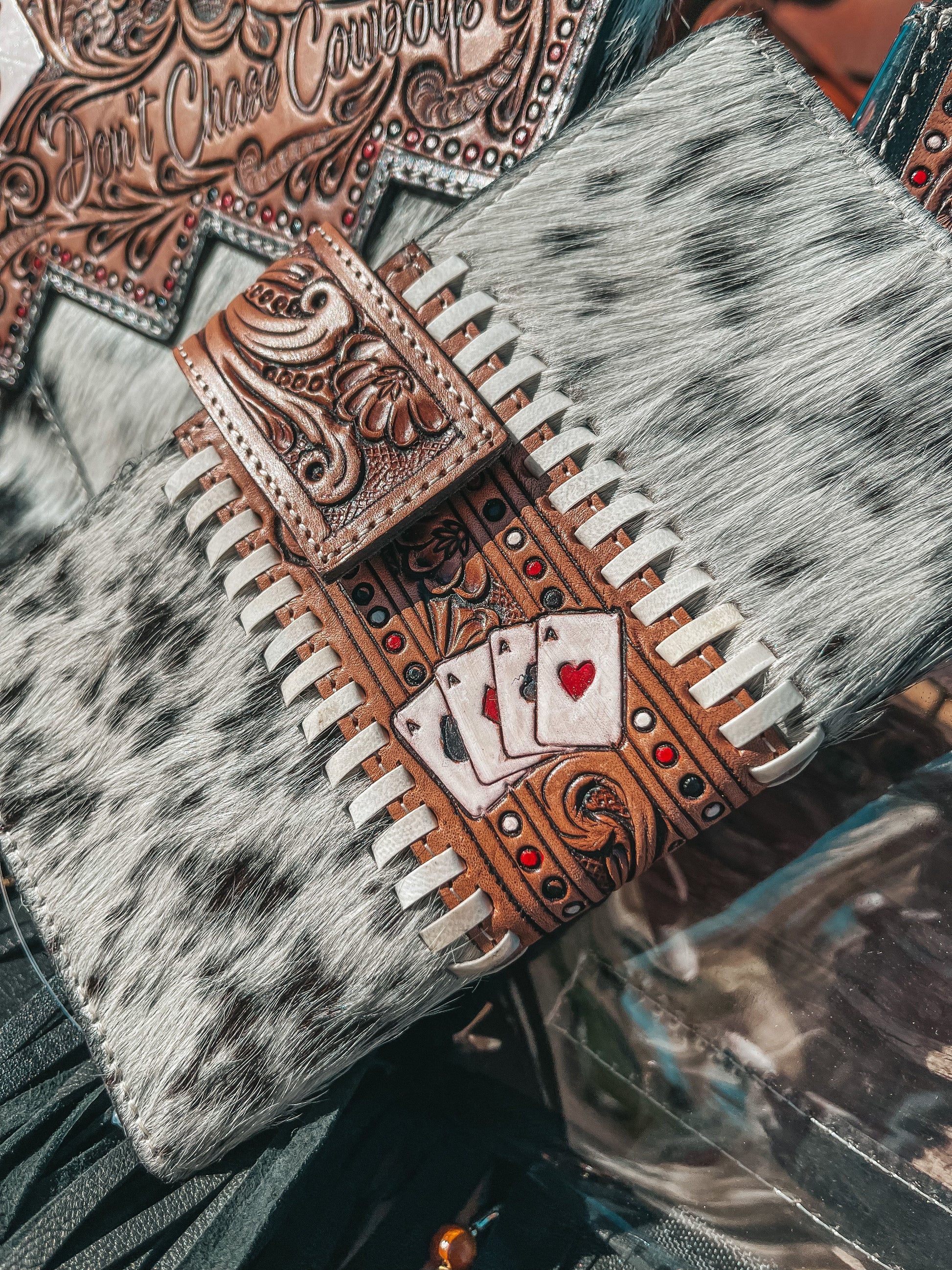 Please note each purse will be one of a kind as each purse will be made with a brand new unique cowhide piece. Each purse is hand painted and imperfections can and will happen.
