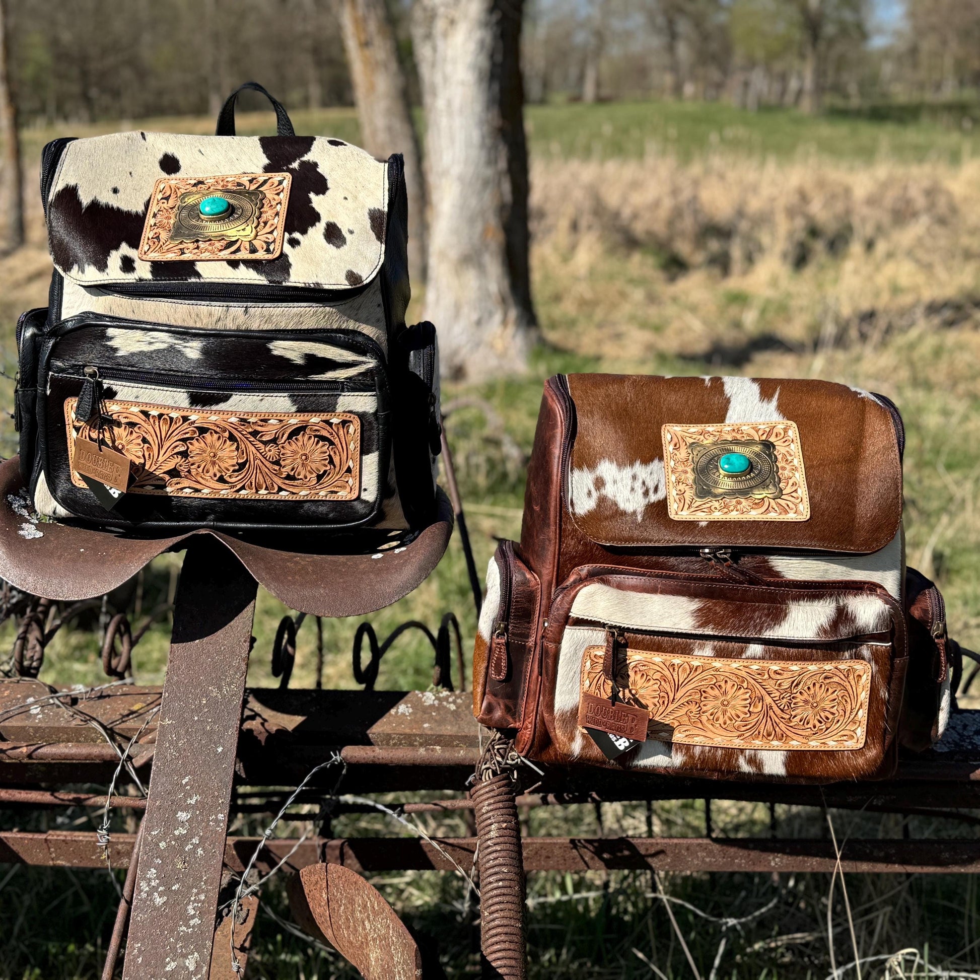 Genuine Western Cowhide Leather Backpack Diaper Bag Personal Item carry-on luggage