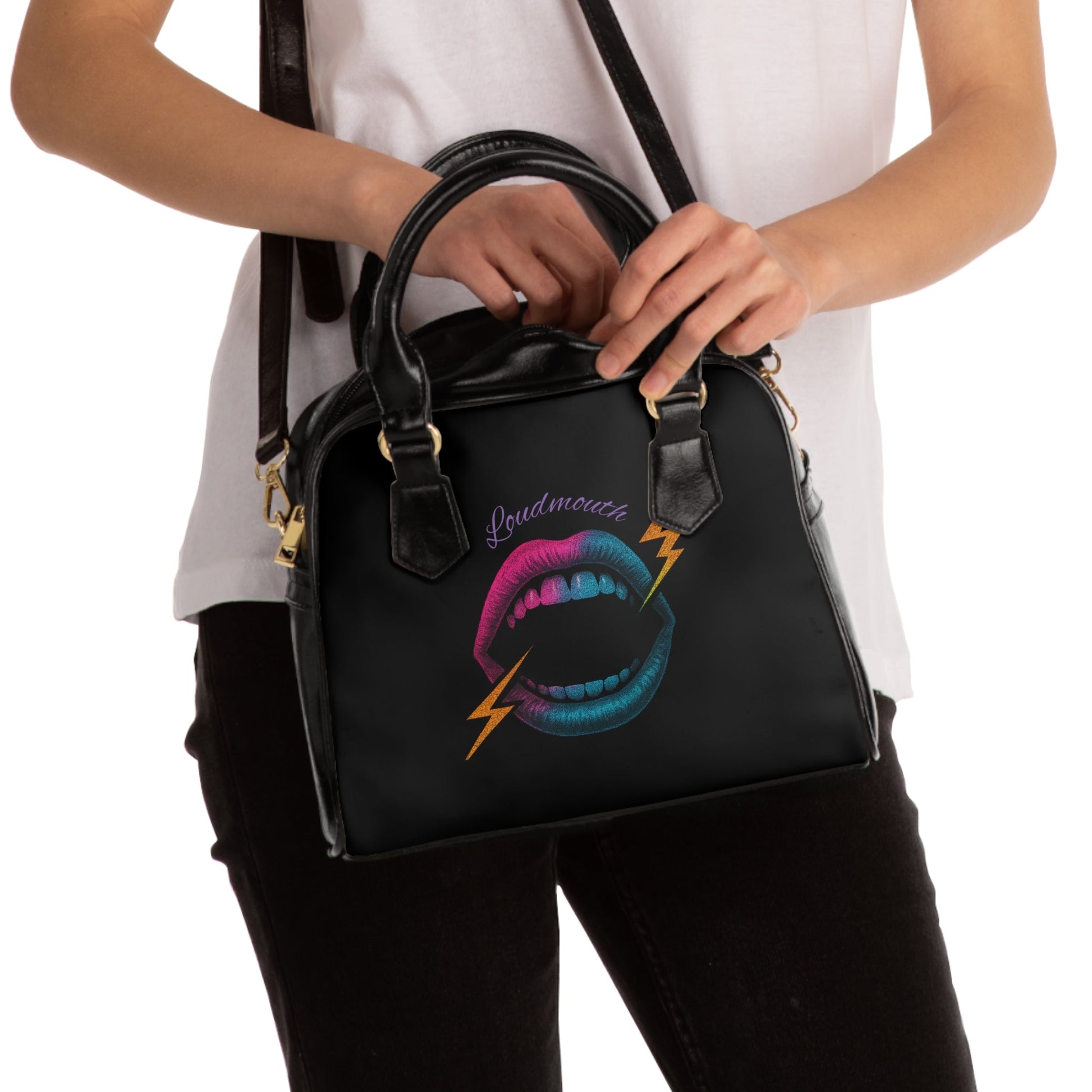 The 'Loudmouth' Shoulder Handbag by TheRockCollective is a vibrant and stylish accessory that will make a statement wherever you go. Made of 100% PU leather, this handbag features a bold and colorful print on both sides, perfect for those who love unique and eye-catching designs. The adjustable shoulder strap adds convenience, while the interior pockets provide extra storage space for your essentials. Ideal for fashion-forward individuals looking to add a pop of color to their outfit, this handbag is perfect for everyday use or special occasions.