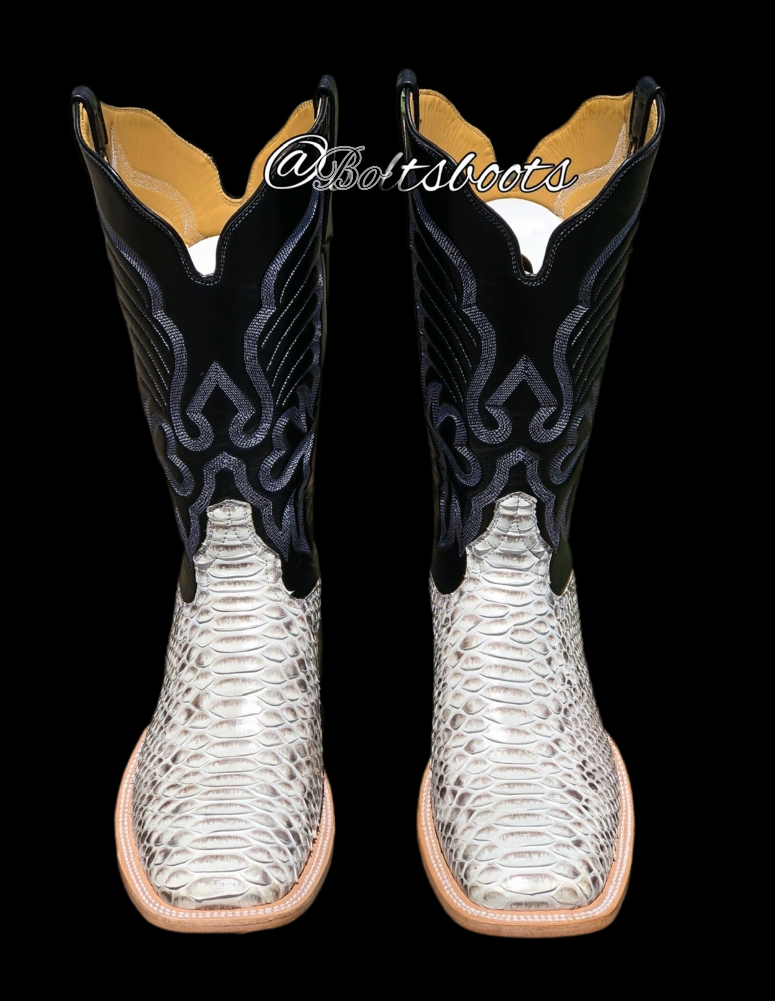Boltsboots natural python boots are one of our best seller for true cowboys They are 100% handmade from the best artisans on earth. Boltsboots provides you with the best quality materials that have been inspected by the highest standards. They are a collectors item that come with an authenticity certificate that is unique for the collector.