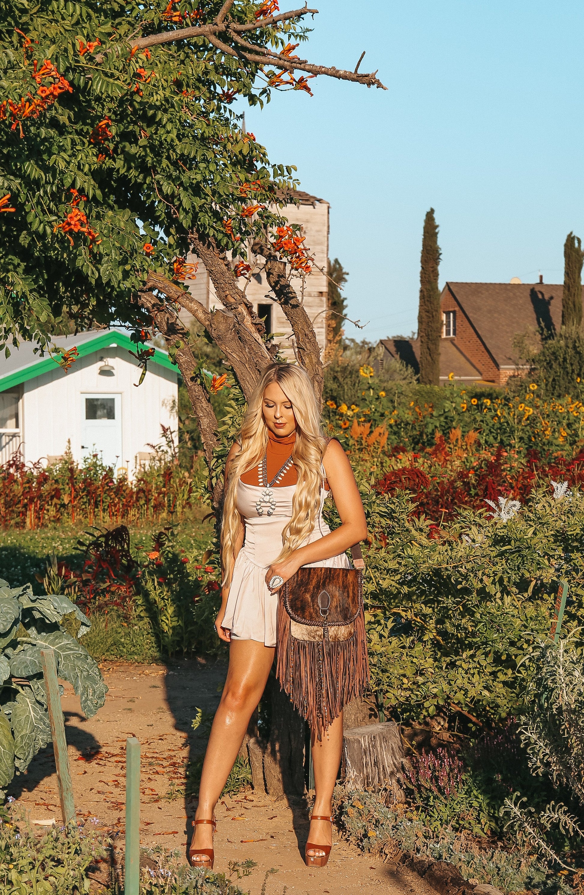A Haute Southern Hyde x Beth Marie Exclusive. The Elva boasts hand weaved fringe, four braids, beaded fringe, a zipper enclosure, one zipper pocket, two cubby pockets, a tooled adjustable buckle strap, genuine hair on and leather materials, and a ton of space to carry all of your essentials.
